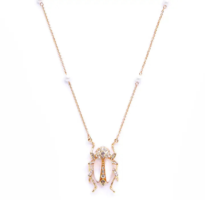 Striking and full of presence, the Bejewelled Beetle Pendant is a celebration of bold design and intricate craftsmanship. Featuring a luminous white beetle body created with bespoke resin and hand-set crystals, this piece draws inspiration from antique jewellery, with an elegant vintage feel brought to life through modern artistry.